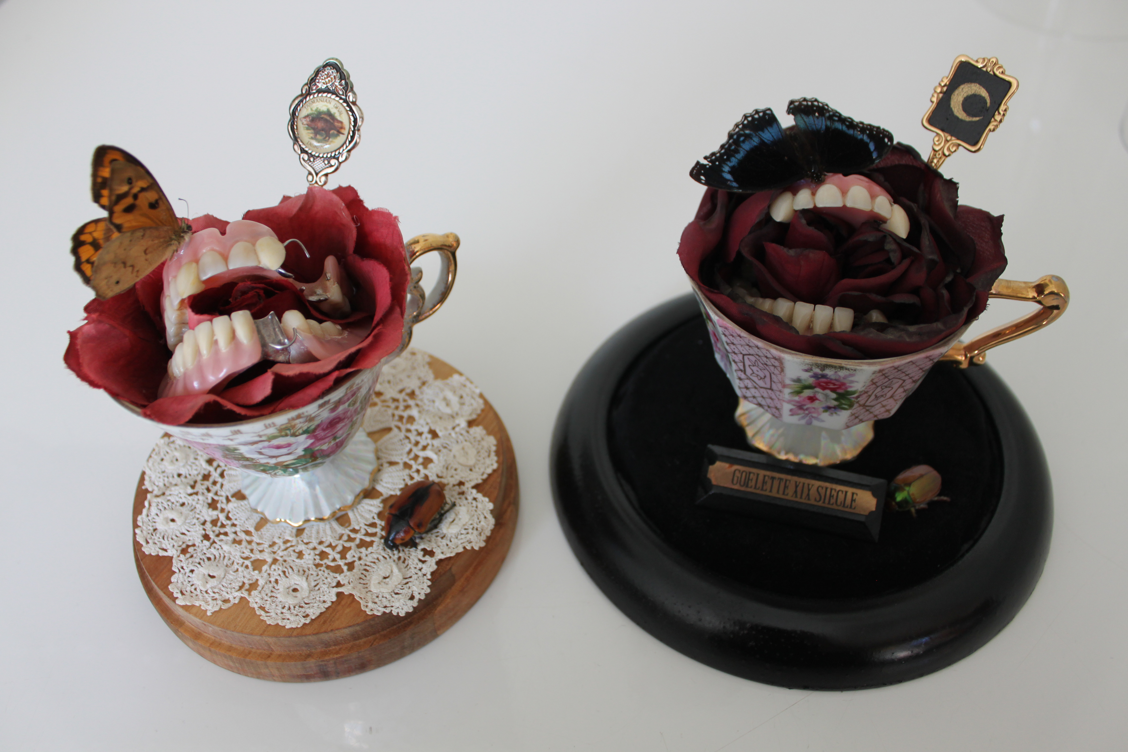 (detail) My grandma’s false teeth, vintage spoons, teacups, antique lace, butterflies, beetles. Both comments and trackbacks are currently closed. Lady Grey and Midnight Munch SOLD ~ Commissions Open for Similar Pieces