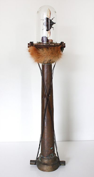 (whole view) Flying Rhino Beetle, real moss, real sap, real baby acorns, in an Antique Lighthouse Light Fixture, antique fireman’s hose end, fox fur. Both comments and trackbacks are currently closed. Amber Light NFS